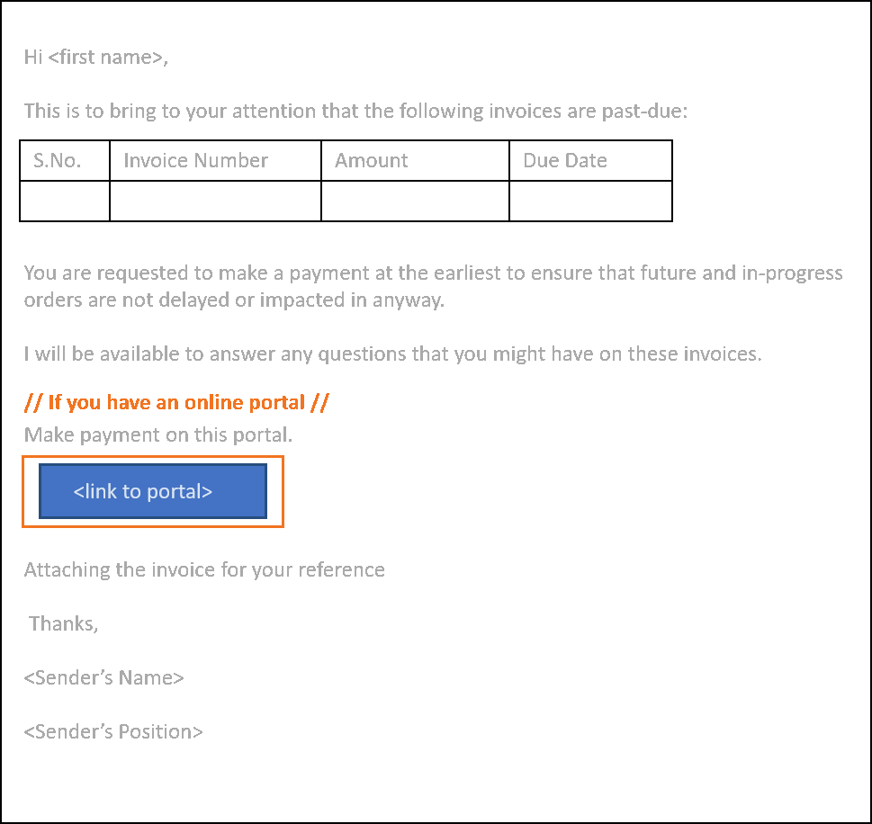 Sample email 2.9 is written when the customer’s order gets blocked due to outstanding payments