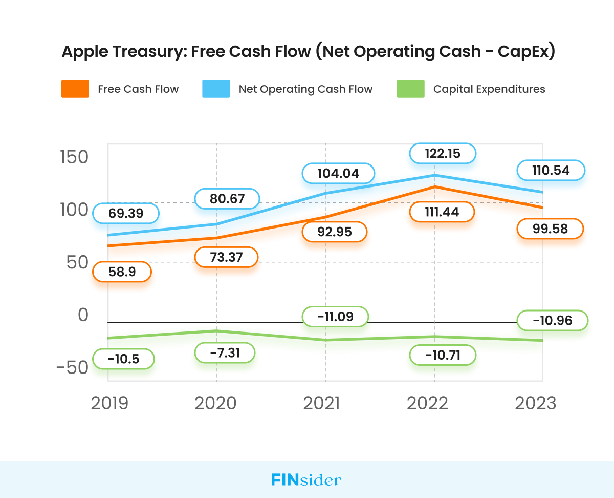 What makes Apple stand out? From efficiently managing their Free Cash Flow (FCF) near the $100 billion mark year-on-year to using advanced hedging techniques to mitigate 96% of the currency risks, Apple's treasury management techniques have set a standard for others to follow.