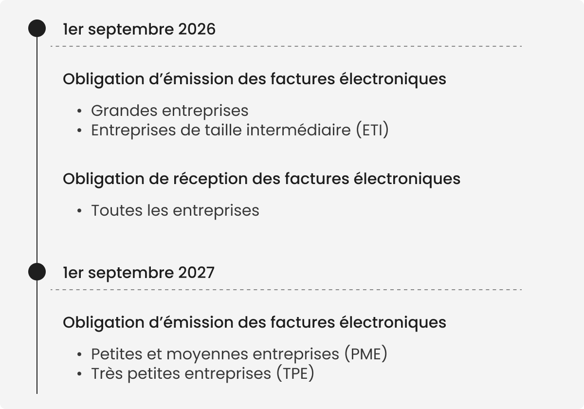Le compte à rebours est lancé, le calendrier pour la réforme de la facturation électronique est fixé, conformément à la loi de finances pour 2026 :