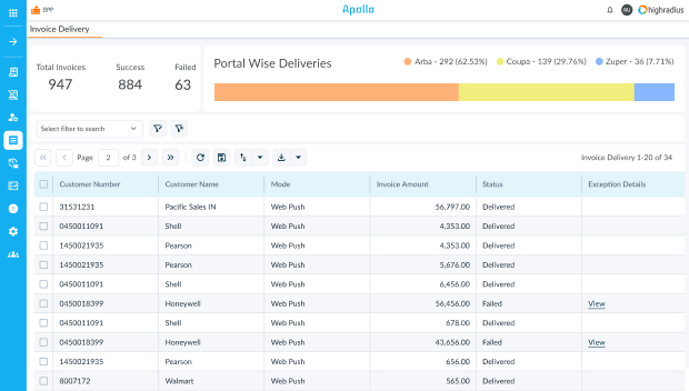 Track e-invoice acceptance /rejection by government portals and intelligent retry mechanism.